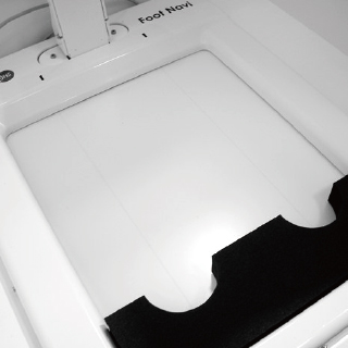 靴下になっていただき、かかとを合わせるだけでかんたんにチェックできます。