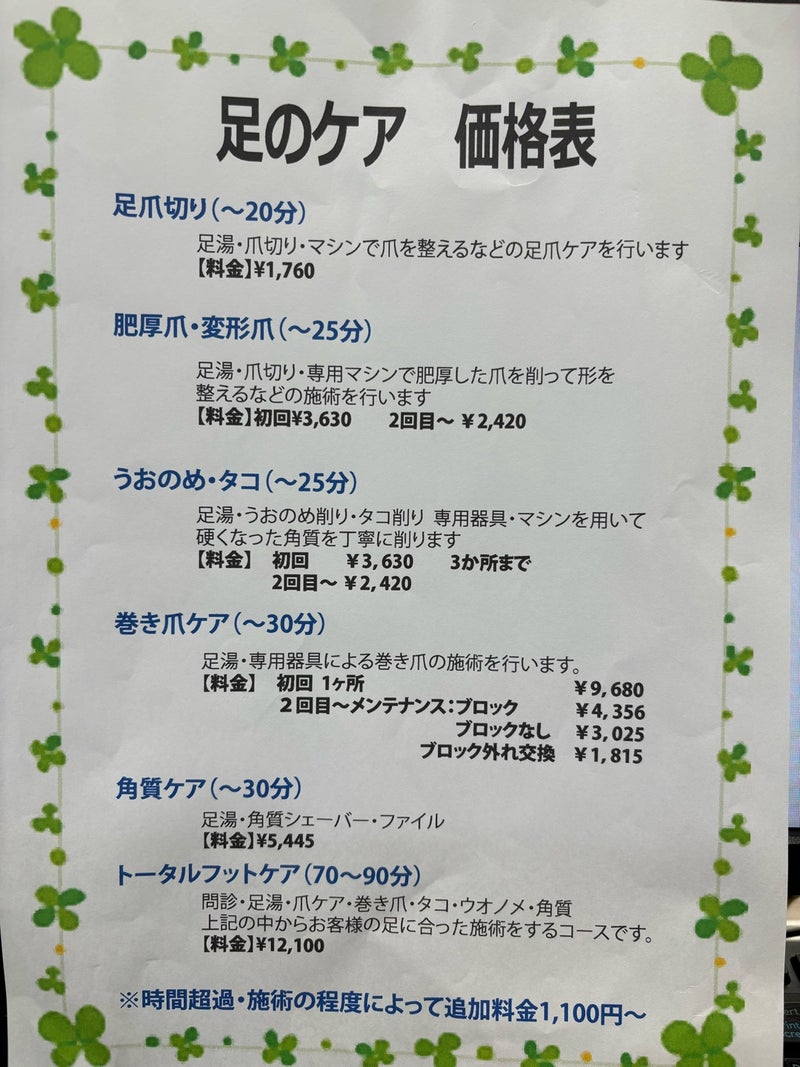 足ケア7月〜価格変更&予約休止のお知らせ